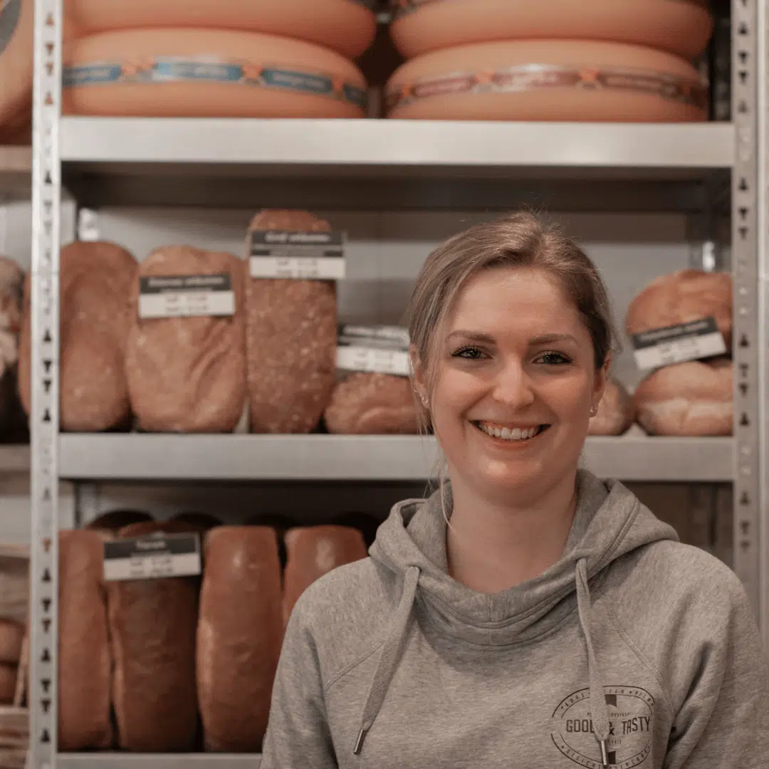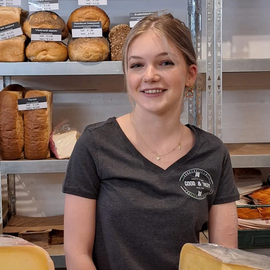 In de winkel is mijn favoriete product de Oostburgse Oude kaas. Deze kaas is 1 jaar gerijpt en is heerlijk voor op brood maar ook zo uit het vuistje. Op brood is hij heerlijk in combinatie met de vierjaargetijdensalade.